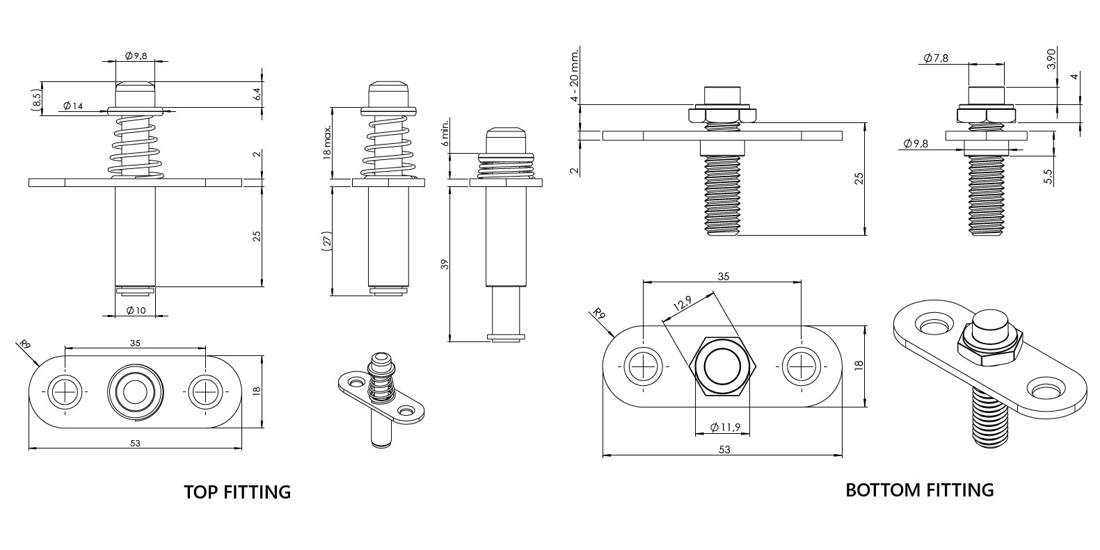 Invisible Pivot Hinge F/Slats, W/Spring Tention, 360 DG, Steel, Ideal for Room Dividers in Wood (Turning Blocks to be Ordered Seperately item 15.08.193-0)