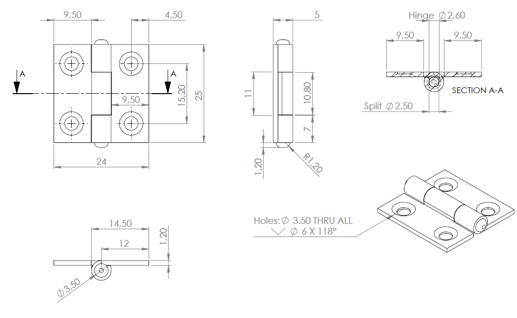 Butt Hinge, 25x24x1,2mm, Steel, BZP, 4 CSK Holes