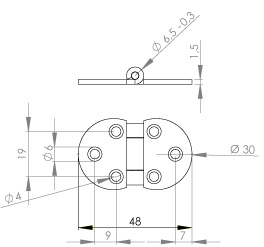 Flap Hinge ø 30mm x 1.5mm knuckle Up, Steel, Bronze Pl.