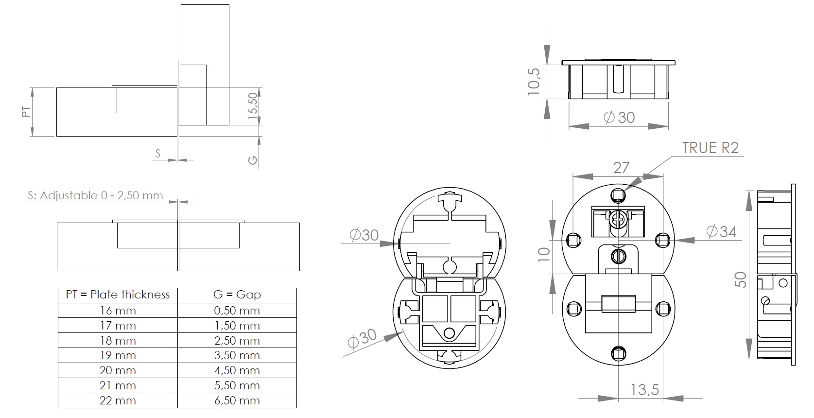 Flap Hinge ø30x10mm, Zamak, Antique Bronze, Detachable