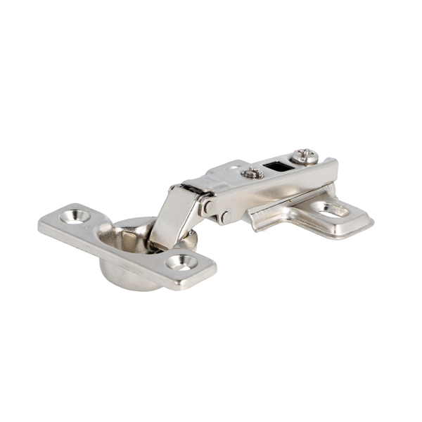 Mini Hinge, Steel, NPL, 98DG, A/00mm Full-Overlay,W/Mounting Plate H:0mm, F/Chipboard Screws, ø26mm Cup cc:38mm - 8mm Cup Height 9,5mm, W/SISO DK Logo In Cup, Slide-On