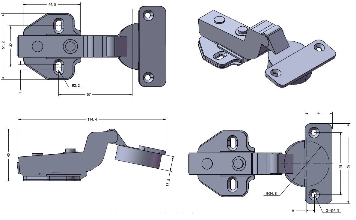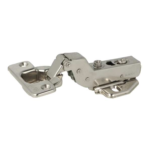 Soft Closing Hinge SS304, "C",ø35mm,Clip-On,H=0,Plate F/Wood Screws, Inset Doors, 100 Degree, Cup cc.:48mm,Mounting Plate F/Wood Screws, H:0mm,No Name Plate,Hydraulic Plastic Pump