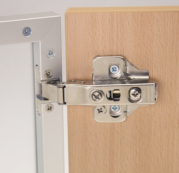 Alu Frame Hinge "C", Clip-On, 100DG, NPL, H=0, W/Plate F/ Wood Screws , Inset, W/SISO DK Name Plate, No Screws, F/19-24mm Alu Frames, cc:28mm On Hinge Head