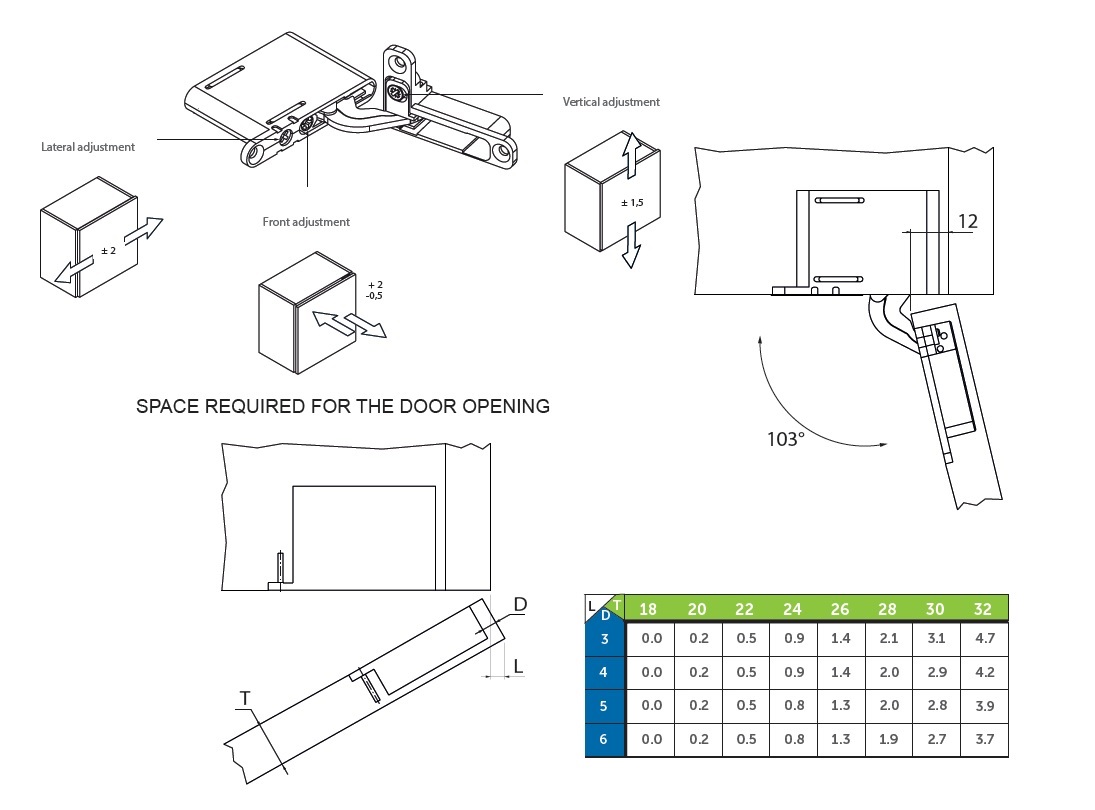 Cabinet Hinge "3D", 103 DG, Soft Close, Zamak, Black, Right, Max Load Capacity: 20 KG per Door