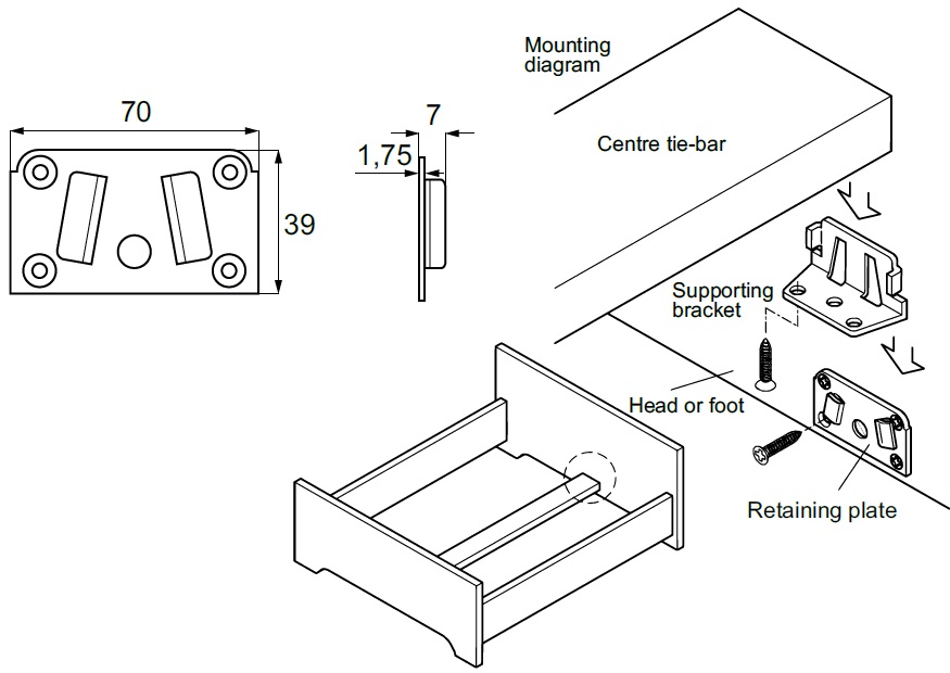 Bed Support No. 3892, Steel YZP, 69mm Width, Female Only