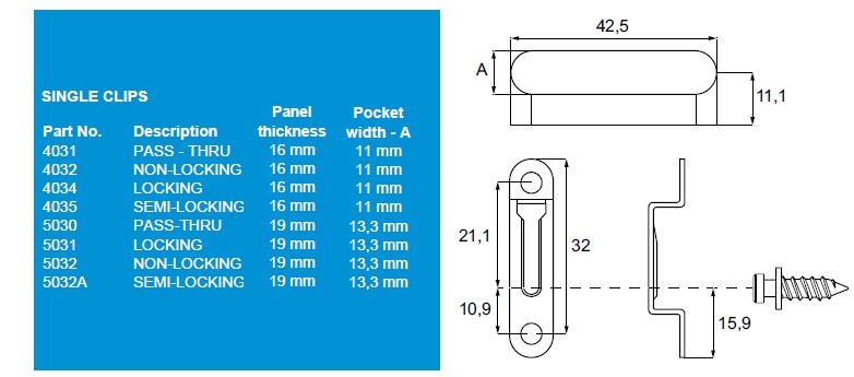 "INVISIO" Single Clip #4032, F/16mm Panel, Non Locking