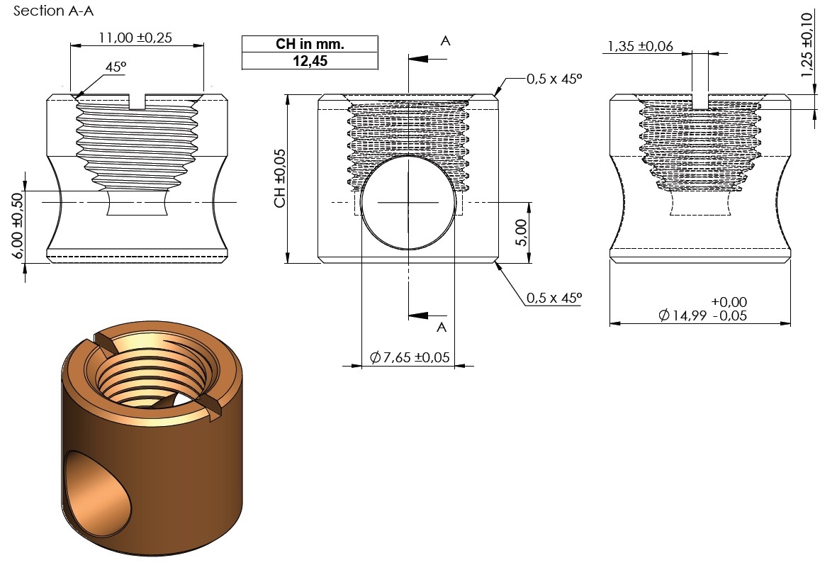Cylinder F/KD System S, ø15 x 12.5mm, Steel Bronze Plated