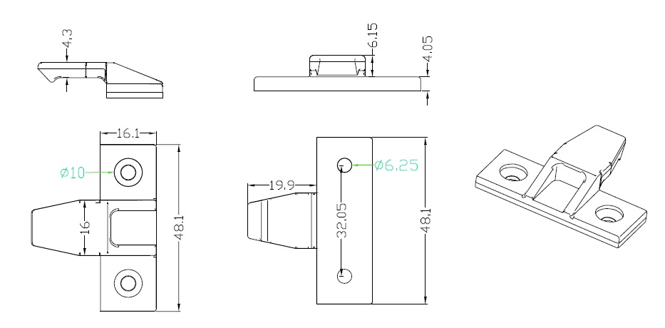 Clip Panel Connector "Push Fit", Male Only, F/Euro Screws, Black PC, (NOT FOR SALE IN GERMANY)