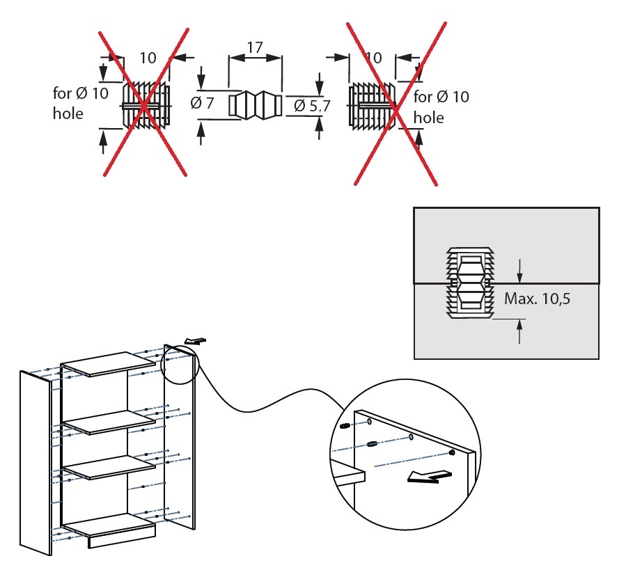 Snap Fitting "Bone" Male Part-White PA, ø7x17mm