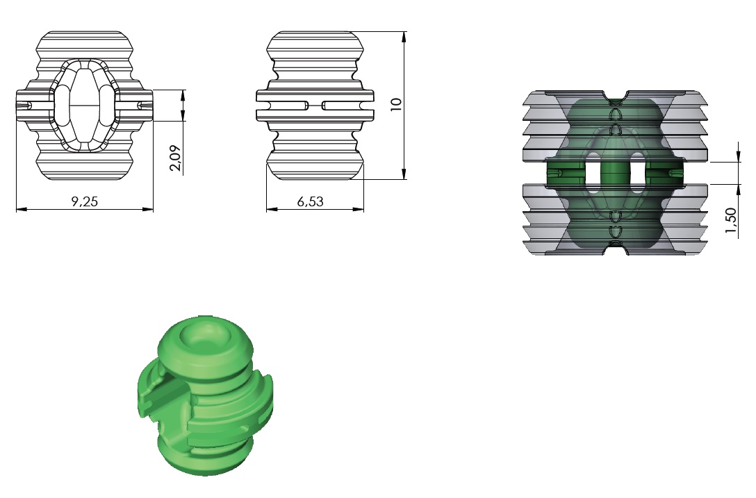 Snap Fitting "Diva" Male Part - 1,5 mm,Green PC, ø10 x 10mm
