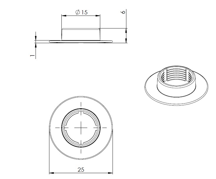 Snap Fitting "Donna" Bottom Part, Grey PC, ø25x6mm, W/Collar