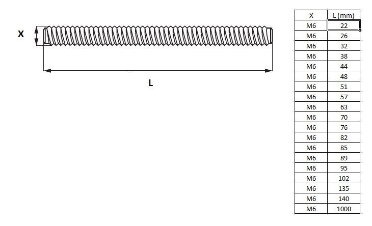 Threaded Bolt M6x22mm, Steel, Yellow Zinc Plated