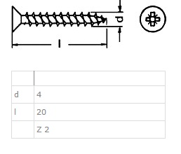 Chipboard Screw, CSK, PZD, SS A2, ø4,0x20mm, Fully Threaded