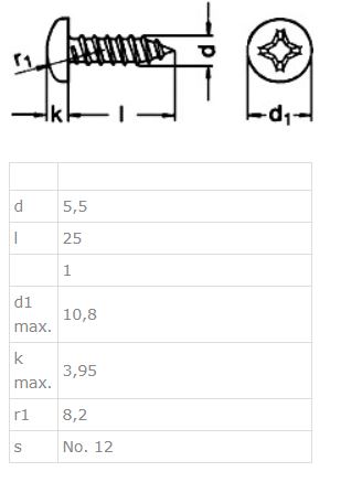 Chipboard Screw,Pan Head,PZD, SS A2, ø5,5 x25mm,Self Tapping