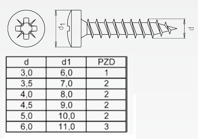 Chipboard Screw, Pan Head, PZD, Steel YZP, 3,0x20mm, Full