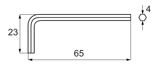 Insex Key, 4mm, L-Shaped 65x23mm, Hardened Steel, Black