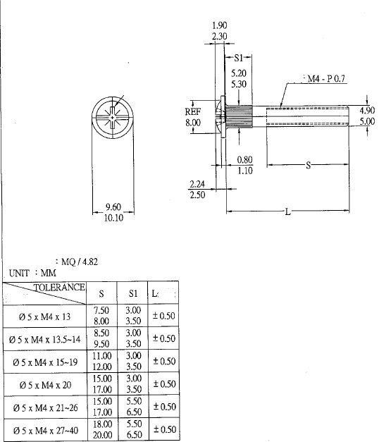Female Connecting Tube, Bore 5mm, M4x27mm, Steel Bronze Pl.