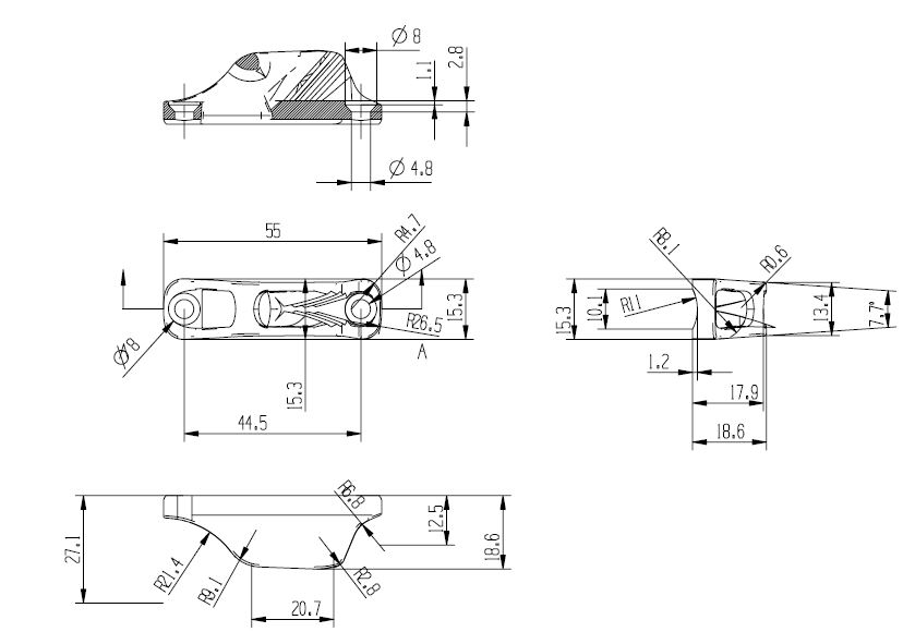Rope Clamp F/Rope 4-6mm, SS316-Polished, 55x15x18,5mm