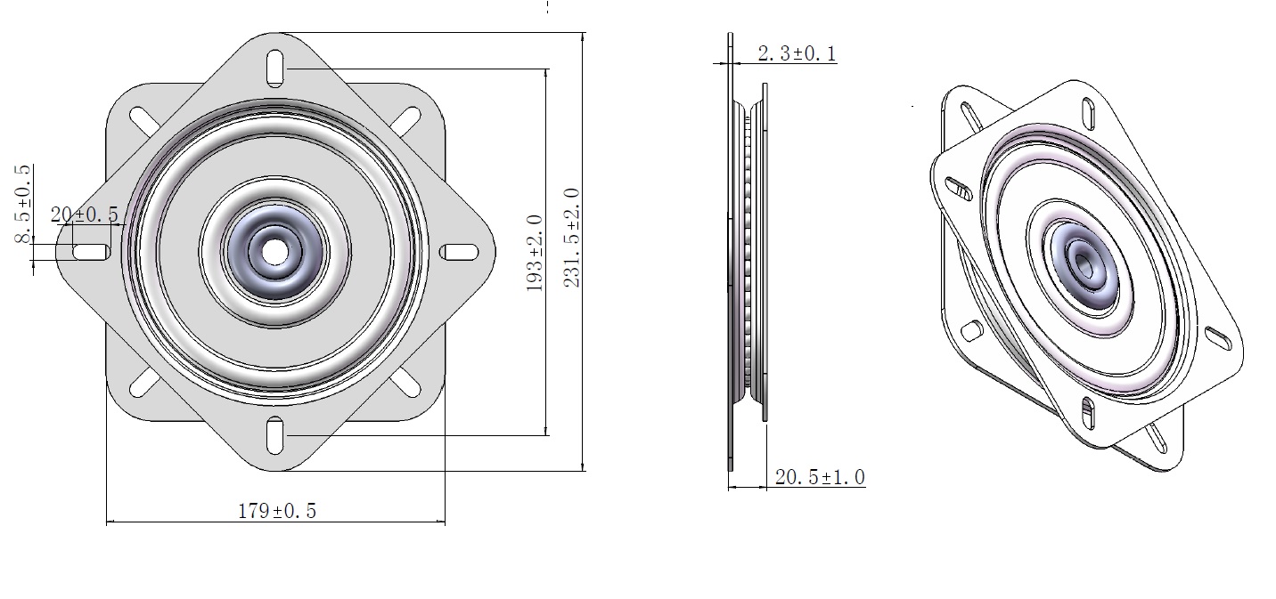 Swivel Plate 360DG-FB, 179x179mm, Black ZP, Load Cap. 200KG, Full Balls