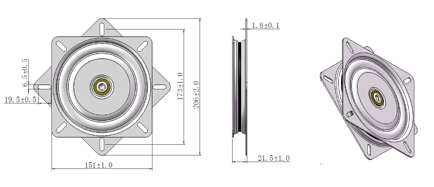 Swivel Plate 360DG-HB, 151x151mm, Black ZP, Load Cap. 150KG, Half Balls