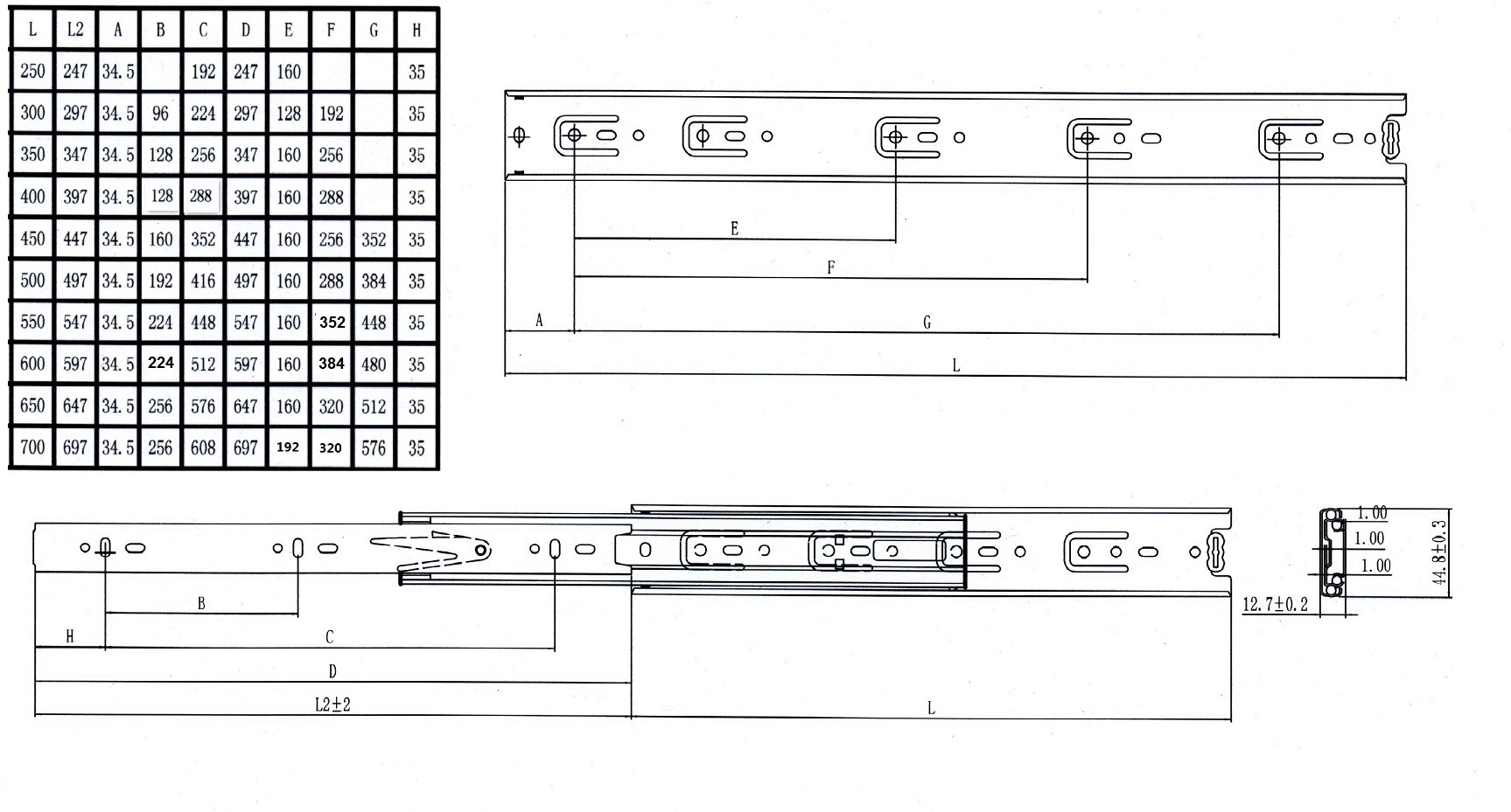 Drawer Slide NJ4500, 300mm Full Extension, Zinc Plated
