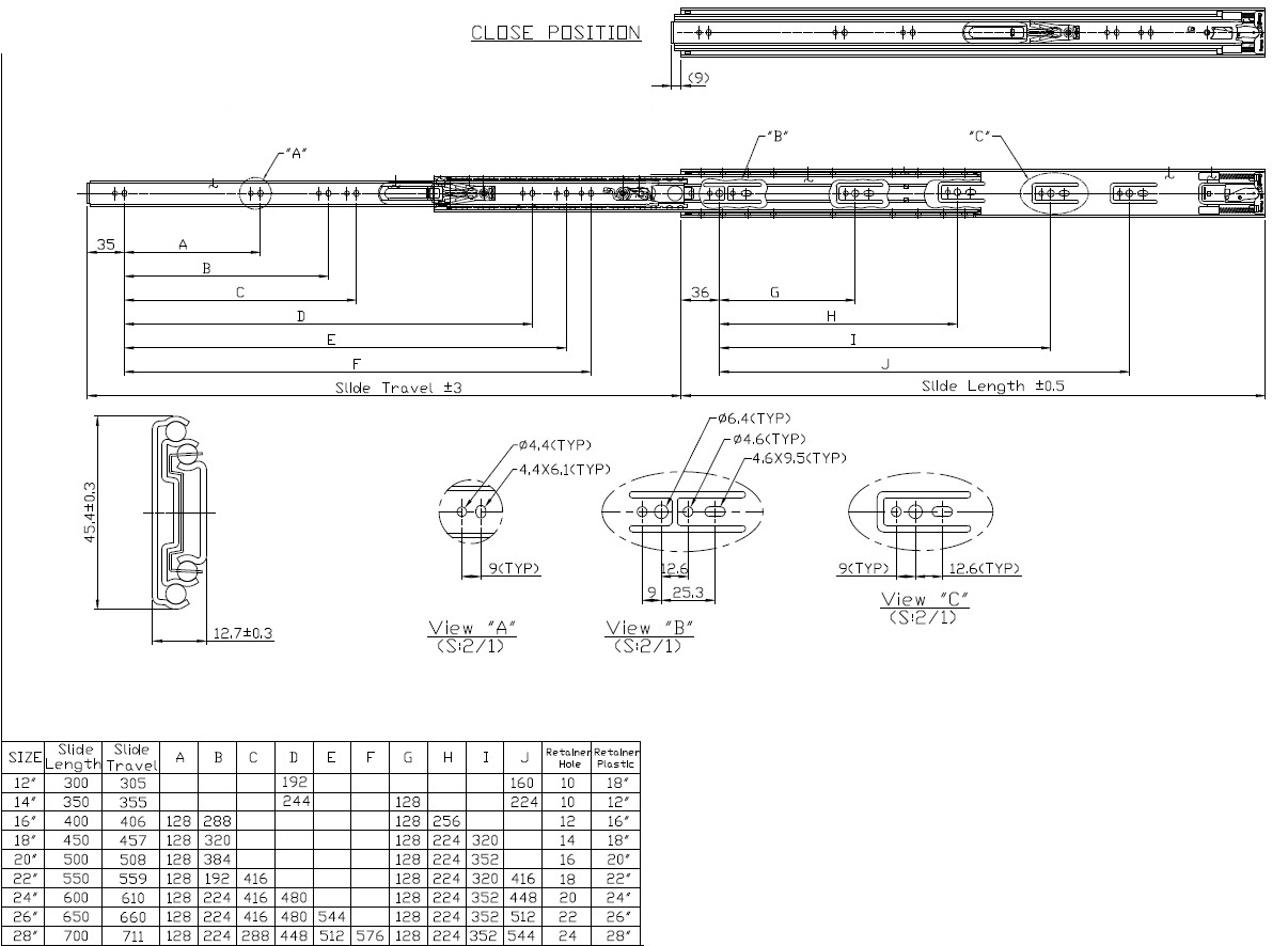 Drawer Slide PTO 4500, Full Extension, BZP, 610mm