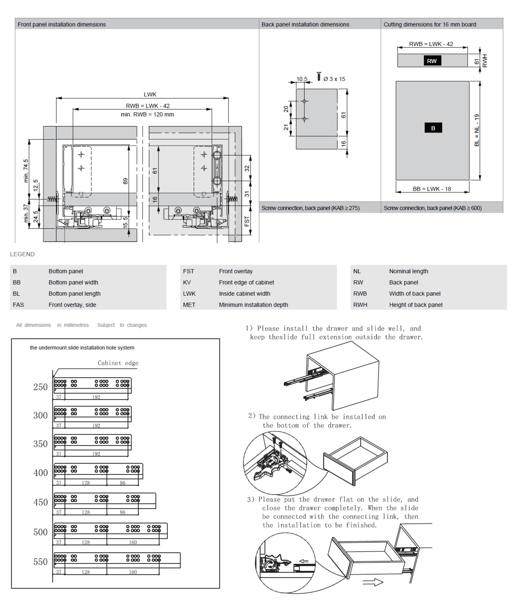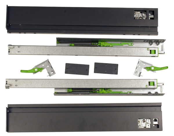 Metal Box 89x14mm Drawer, 450mm, Full Ext, Pre-Zinc, Side Panel: Graphite Black, Self & Soft Closing, W/Quick Release- Handle
