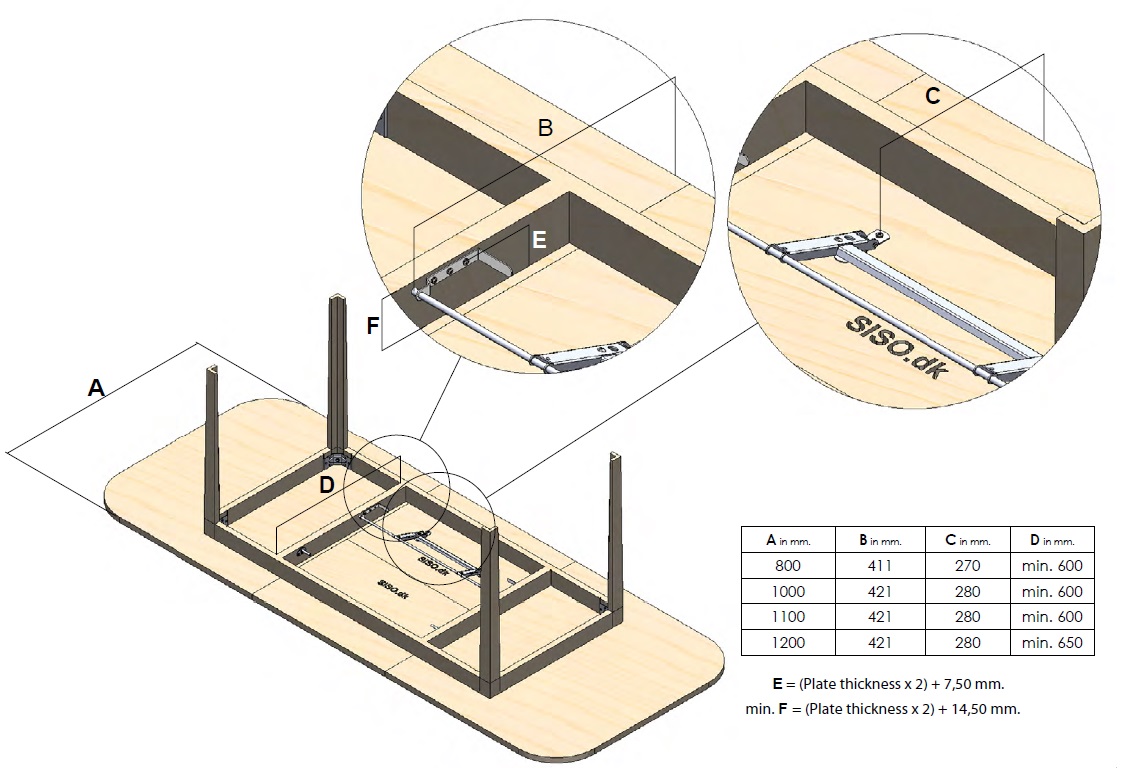 Hide Away Mechanism #1100, F/700mm Table Flaps, CPL