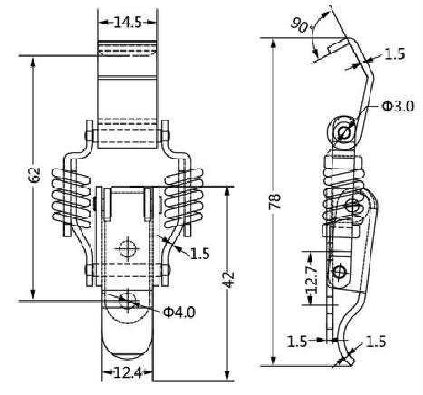 Spring Catch, Steel, 62x12,4x1,5mm, Nickel Plated