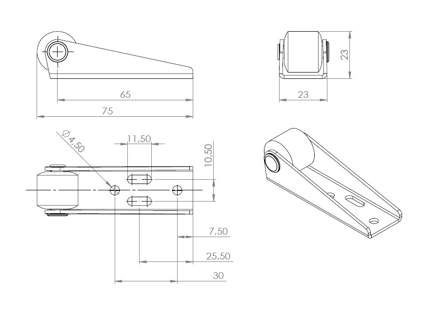 Table Slide Supporting Roller, Steel, BZP, Black PP Roller