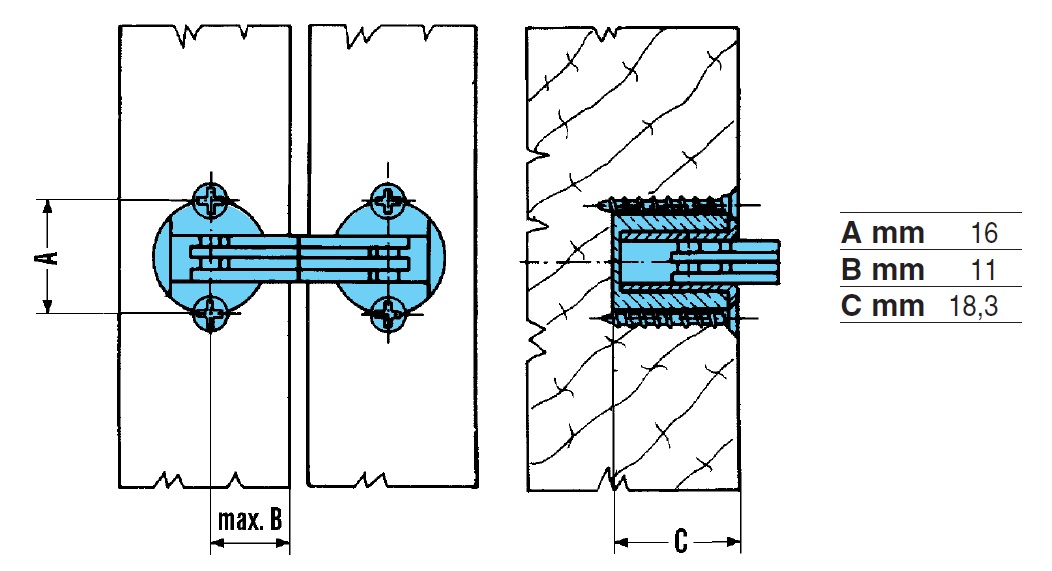 Cylinder Hinge, Brown Plastic, ø16mm, With Screws