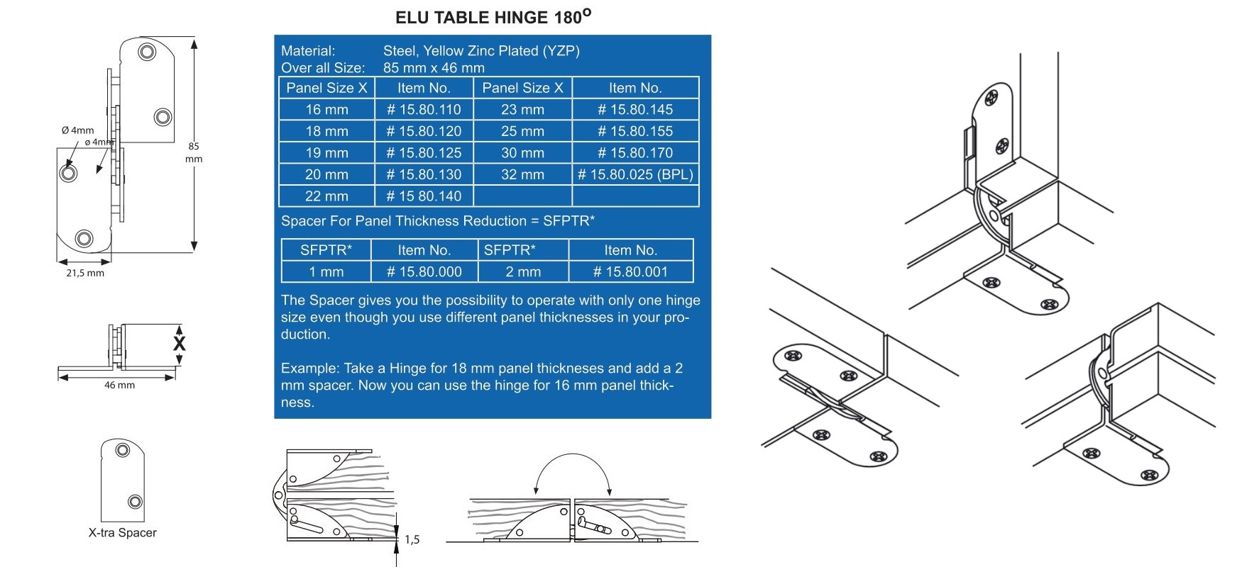 Elu-2 Hinge F/25mm Wood, Steel YZP (CR6), SISO DK Logo