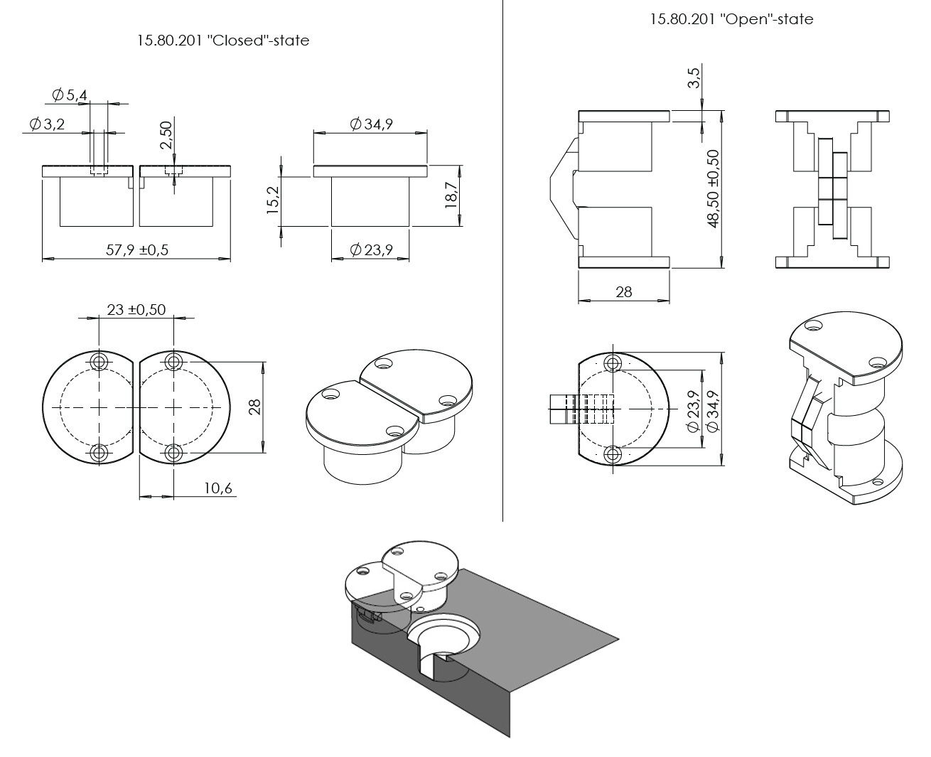 Table Flap Hinge Nylon/Zamak, Black/Black Zinc,Bore ø35x16mm
