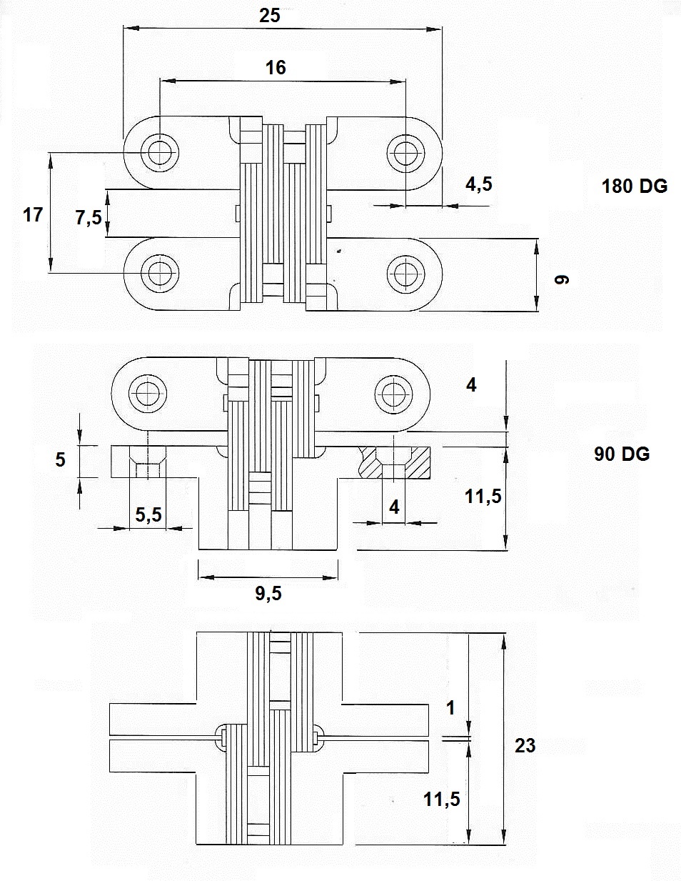Vici Hinge, Zamak, 25x9mm, Steel Linkage,SS-Brushed,W/Screws