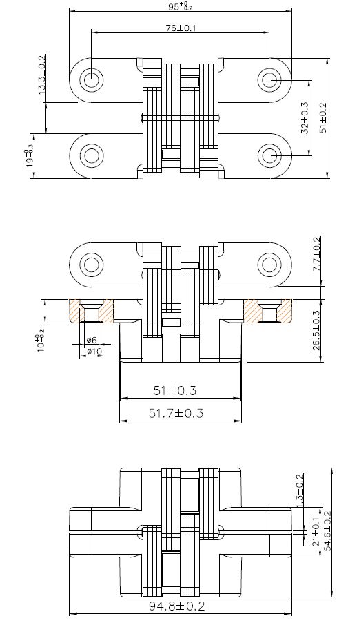 Vici Hinge, Zamak, 95x19mm SS Linkage, SS-Brushed, W/Screws