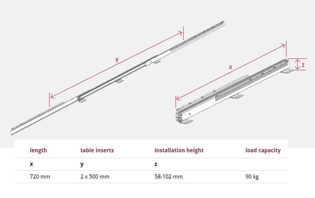 Table Extension Split "S" 1100mm Opening, F/Column, Zinc Pl, Closed Lenght:720mm,Wing Size:450mm,Total Lenght When Open: 1770mm, Profile: 47mm, Load Capacity 90 Kg