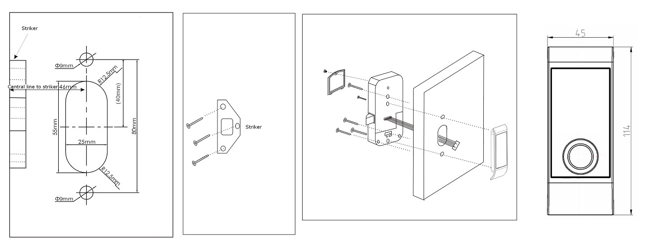 "Ibutton/Dallas" Slam Lock, SS-Look, W/Spring Striker F/PTO Function, Operated by "ibutton" Tag or Wristband (To be Bought Seperately), Power Supply by 4 AAA 1,5 Alkaline Batteries