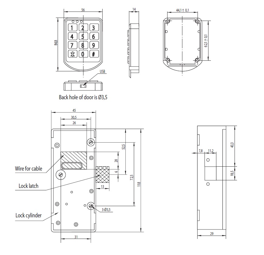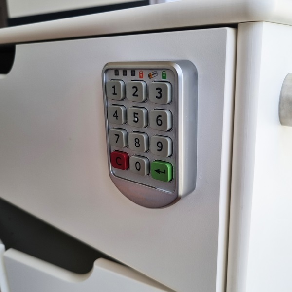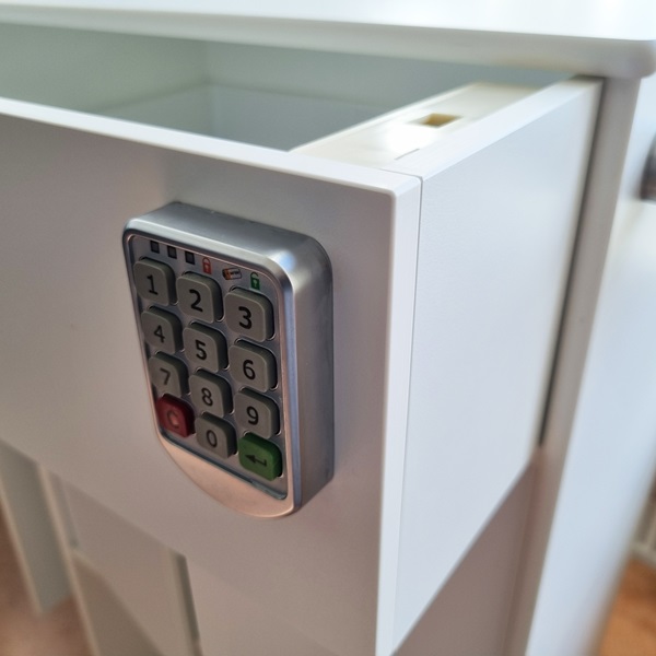 Elec. Combi. "Public" & "Private" Slam Lock DC6V USB-C W/External Battery Box. (To be ordered seperately under item 14.60.325-0). With temporary user code but can be re-coded to permantent code if needed