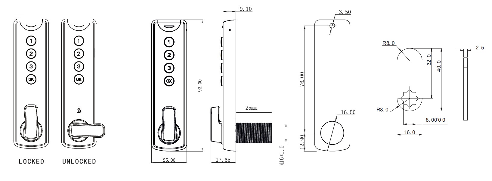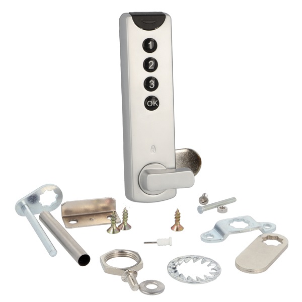 Elec. Combination Cam Lock, "Dave", Private, Silver, 93x25x 9,1mm, CE: 32mm (Battery CR1220 Not Included)-Included: 1Pcs. Striking Plate, 3 Pcs. Cam Plate, 1Pcs. Needle, 2Pcs. Washers, 2Pcs Nuts, 7Pcs Screws, 1Pcs Tube ø6x50mm. Download User Guide From www.siso.dk