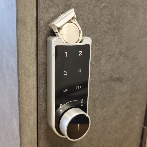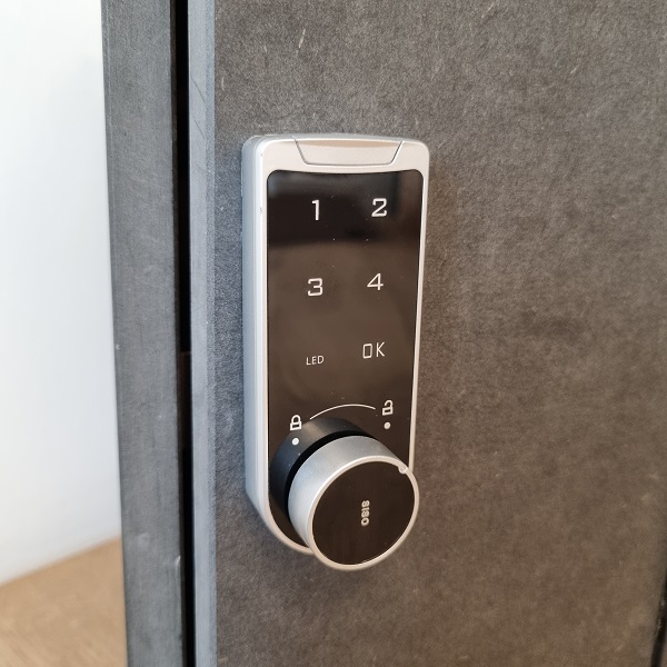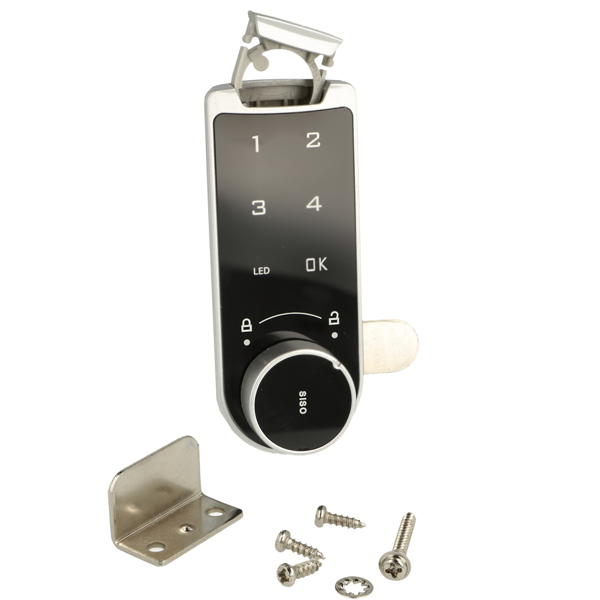 Elec. Combination Cam Lock, "Marc", Public, Silver/Black Body, Incl. Striking Plate & Straight Cam Plate CE: 47mm (Battery CR2032 Not Included) - Download Userguide From www.siso.dk