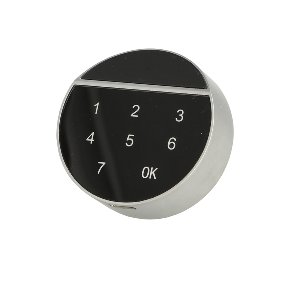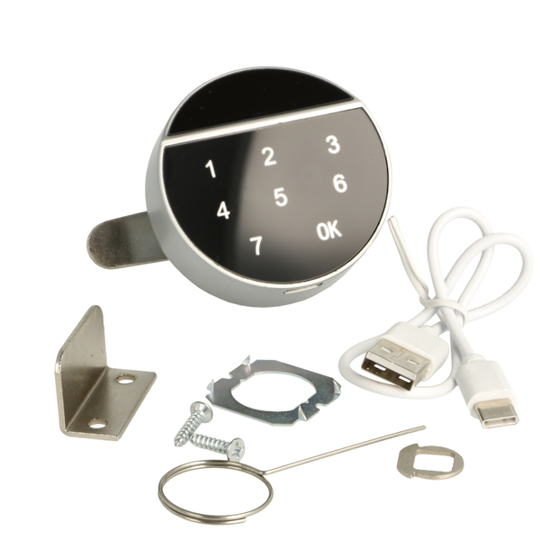 Elec. Touch Pad Cam Lock "Mary", ø19x20mm, ø55mm,Zamak Knob, Silver/Black,W/USB C Charging Cable,Straight Cam ce: 39,5mm, 90 DG Turn, Right or Left by Use of Turning Degree Washer, W/Built-in Lithium Battery, Public/Private
