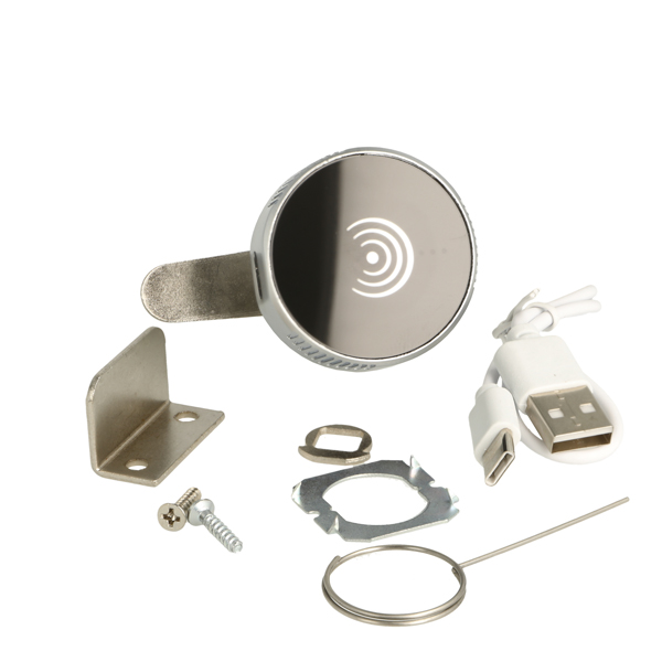 Elec. Mifare1 Cam Lock "Isa", ø19x20mm, ø42mm, Zamak Knob, Silver/Black,W/USB C Charging Cable,Straight Cam ce: 39,5mm, 90 Degree Turn, W/Built-in Lithium Battery, Public/Private