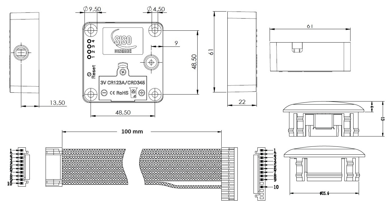 Invis. Mifare1 Lock "Mini" W/100mm Antenna, 61x61x22mm, Black ABS Body, W/Light Grey Card Reader Knob (No Logo), 1xCR123A Batt. Lithium To Be Bought Separately, Can be Programed to Public, Private or Office Mode W/Non Locking & Low Battery Alarm, Striker & Protection Cover to be Bought Separately