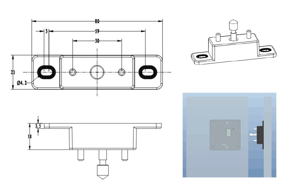 Striker, PTO, F/Mifare1 Lock, F/Sliding Doors, 80x21x18mm, Steel/Black ABS
