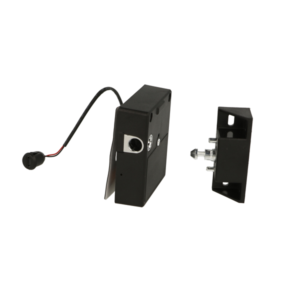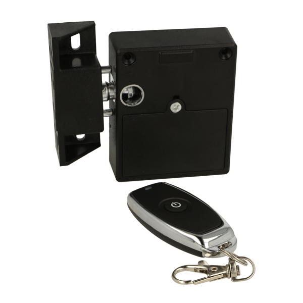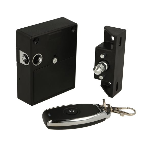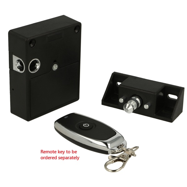 Electronic "Remote" Slam Lock, Remote Key Opening, 433Mhz., Black, Incl. Striking Plate & External Power Cable, Remote Key to be ordered Seperately, No Batteris, Use 3xAAA Alkaline 1,5V Batteries, Max. 20 Keys Pr. Lock