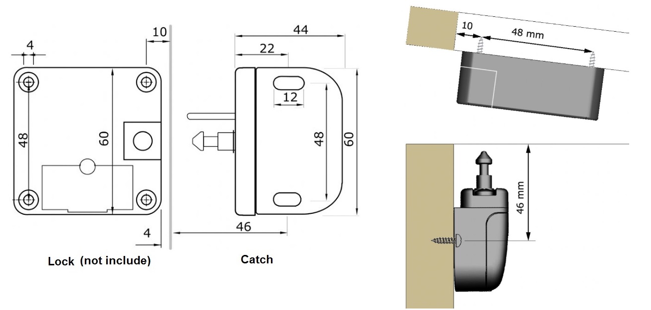 Plastic Spring Catch W/PTO Function & Build-in Magnet, Black 3-Dimensional Adjustment, W/Rated Breaking Point