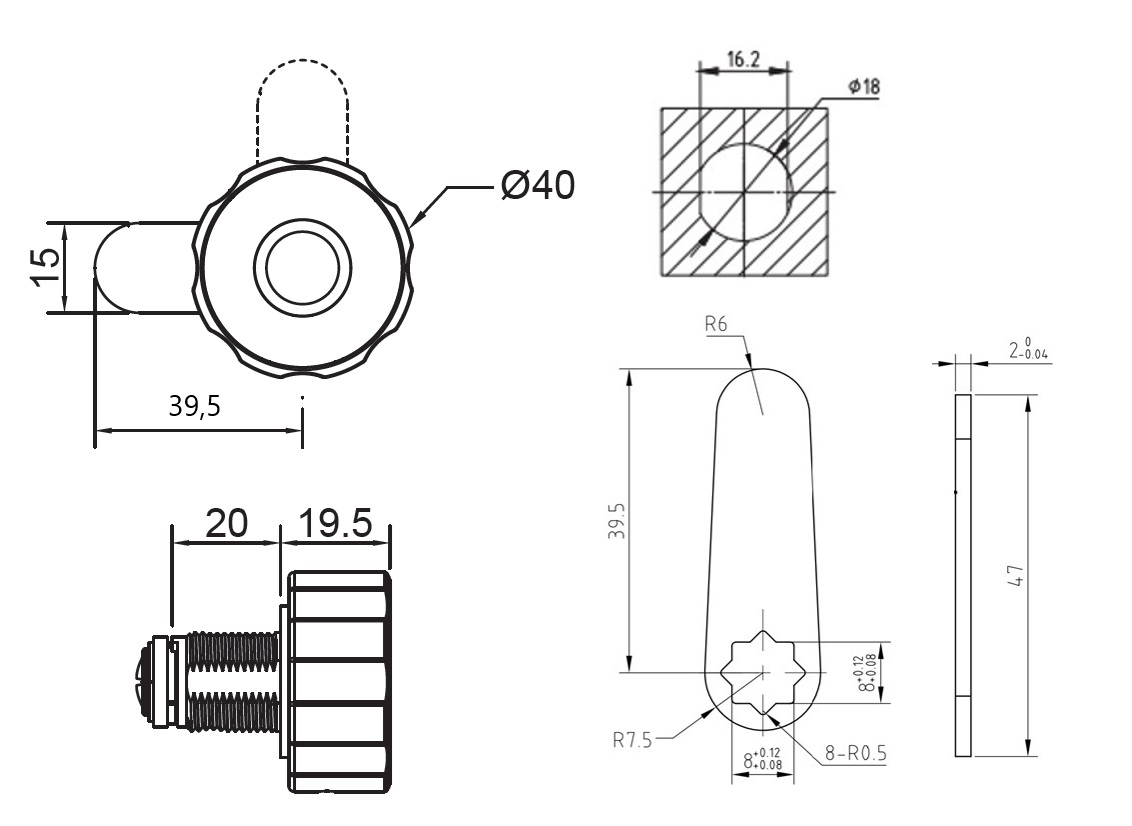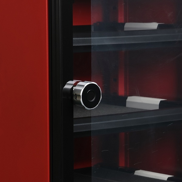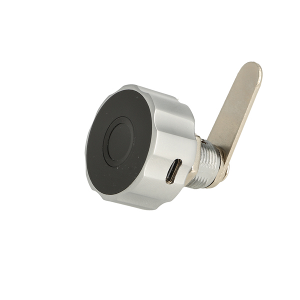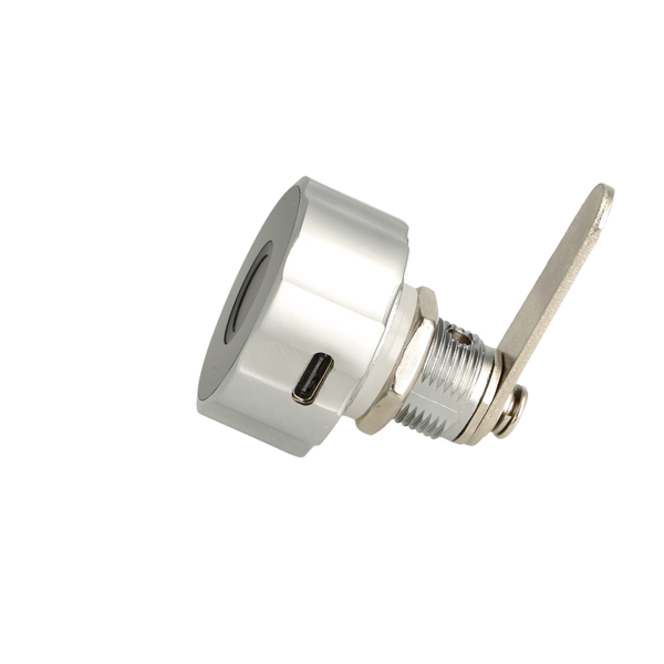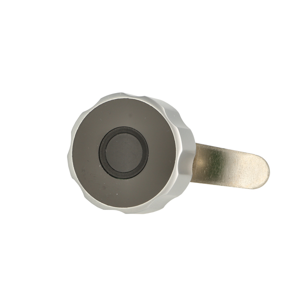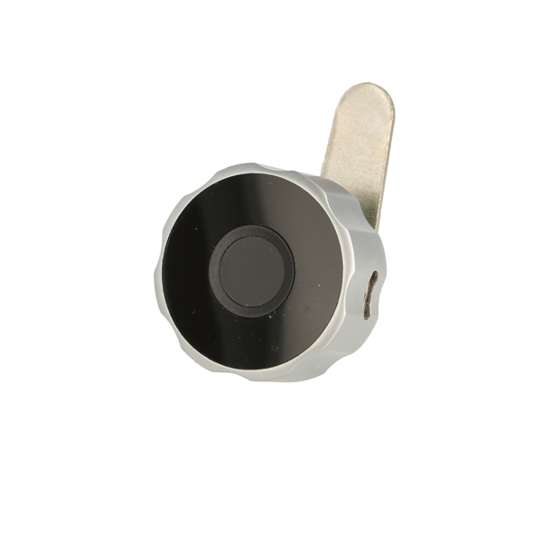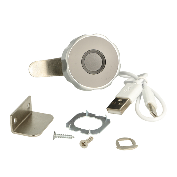 Elec. Finger Print Cam Lock "Fred",ø19x20mm,ø40mm,Zamak Knob Silver/Black,W/USB C Charging Cable,Straight Cam ce: 39,5mm, 90 Degree Turn, W/Built-in Lithium Battery, Operated by TUYA App, Reset E-Key may be bought Separately