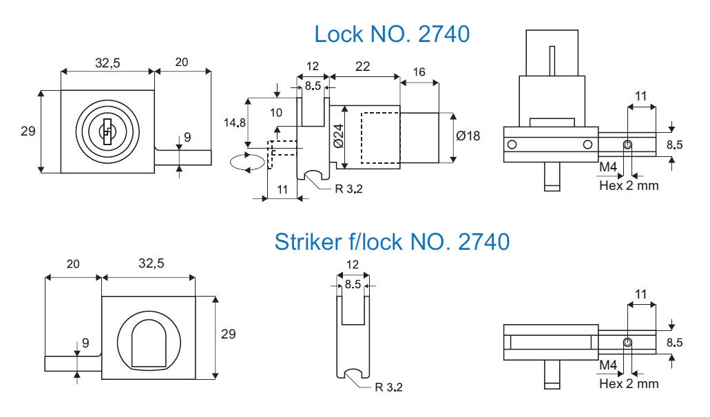 Glass Sliding Push Door Lock 2740, R+L, MK SISO, Alu Finish, W/Striker Handle, Pre-Installed for Right Hand use