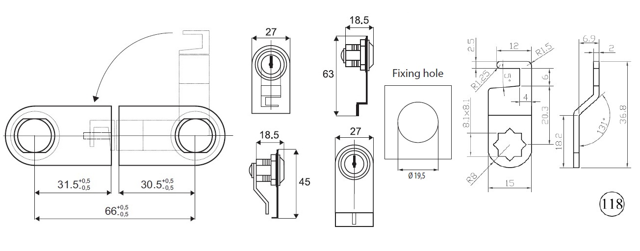 Glass Door Lock "Vitrio", Brass Pl, CK SISO, F/Double Doors