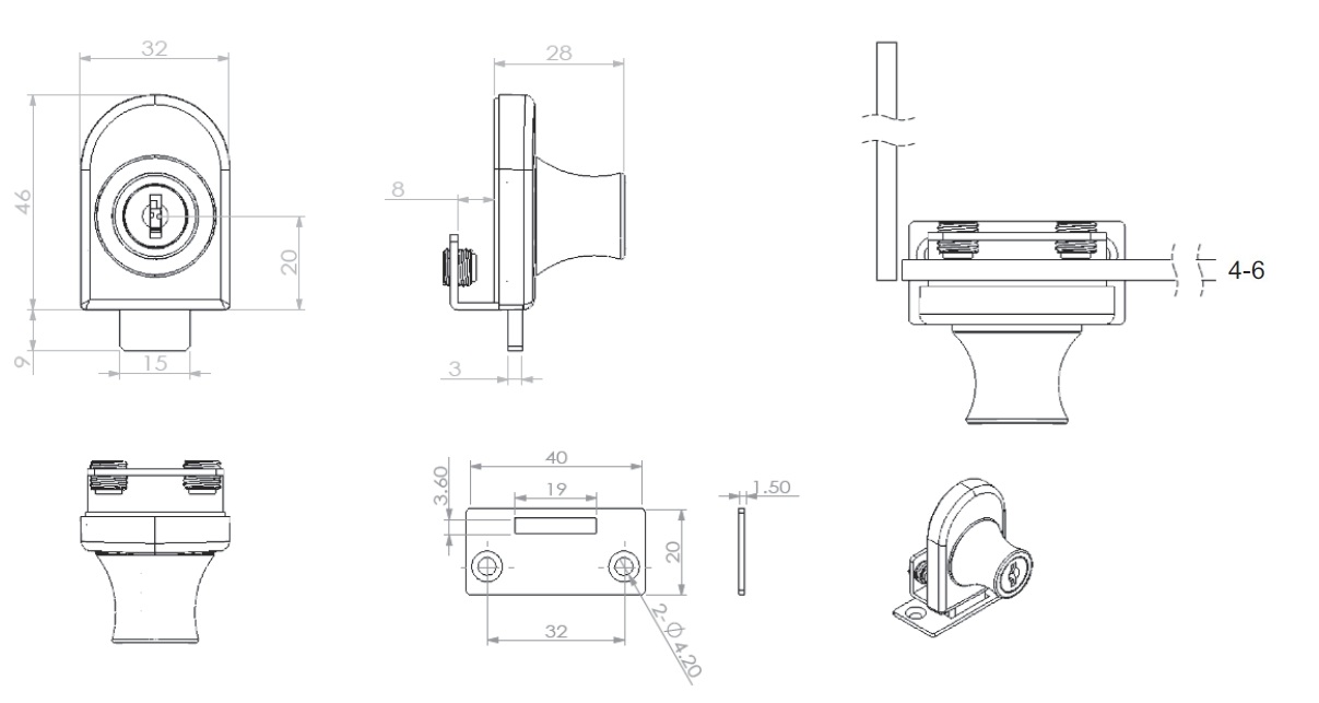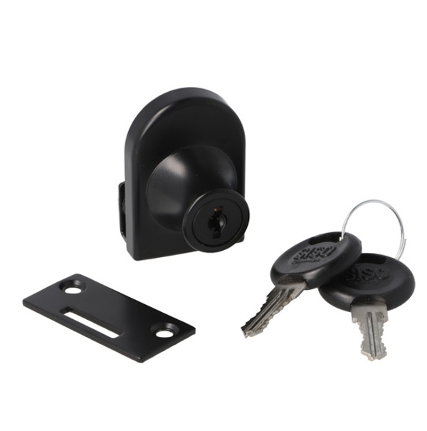 Glass Door Lock 64081, Black Ano, Curved Cylinder, CK SISO, No Bore